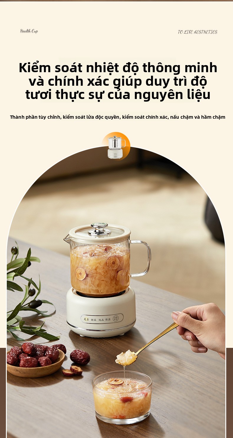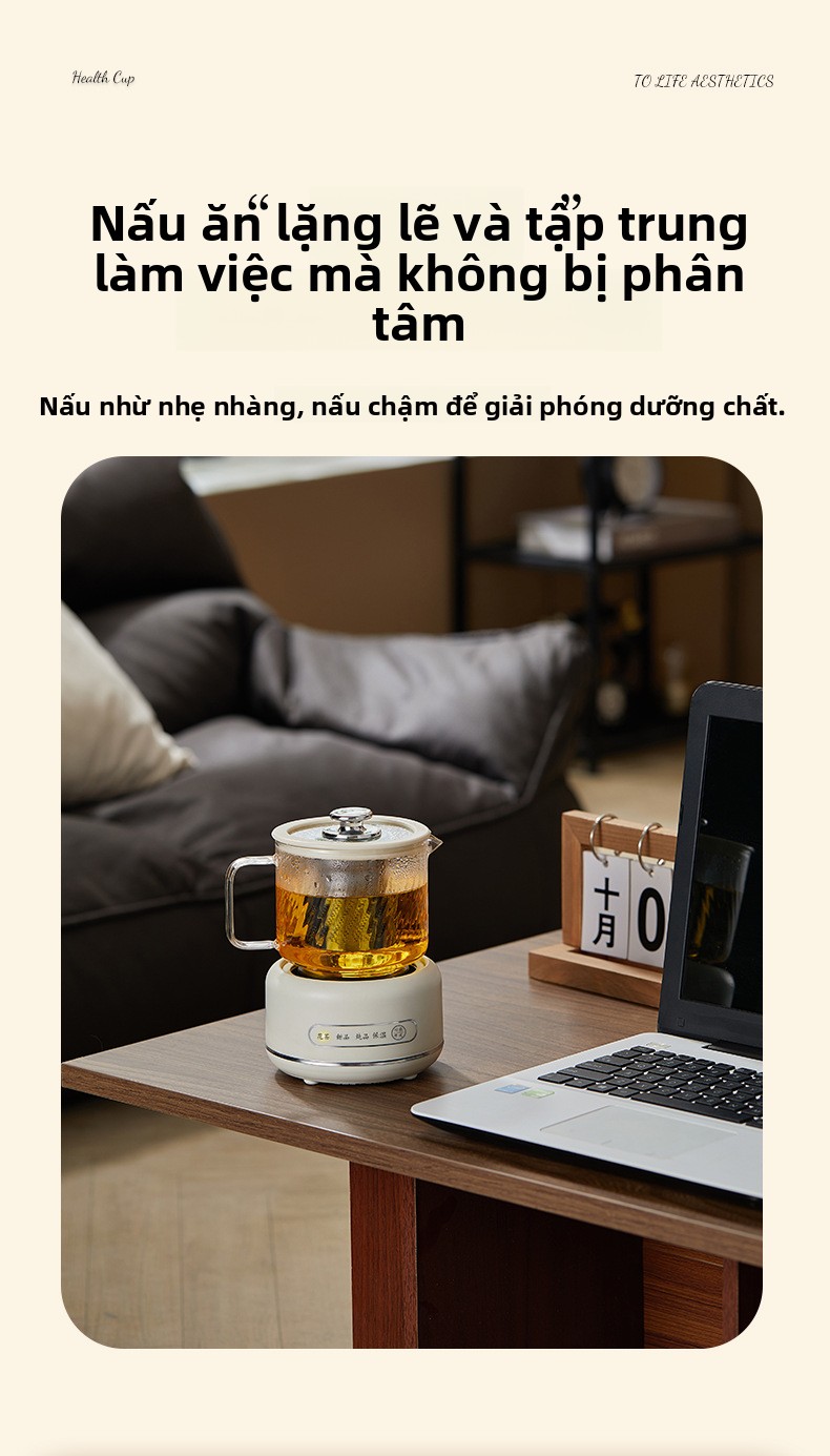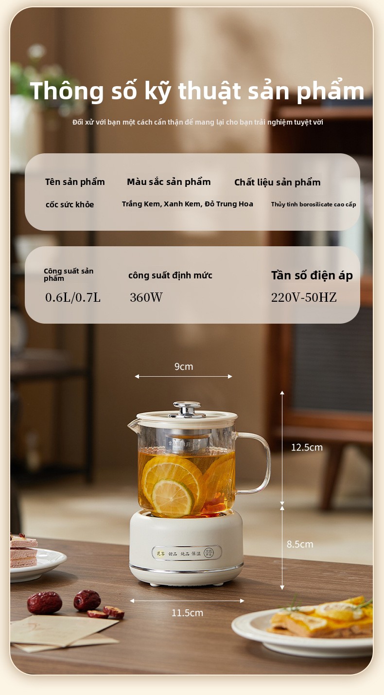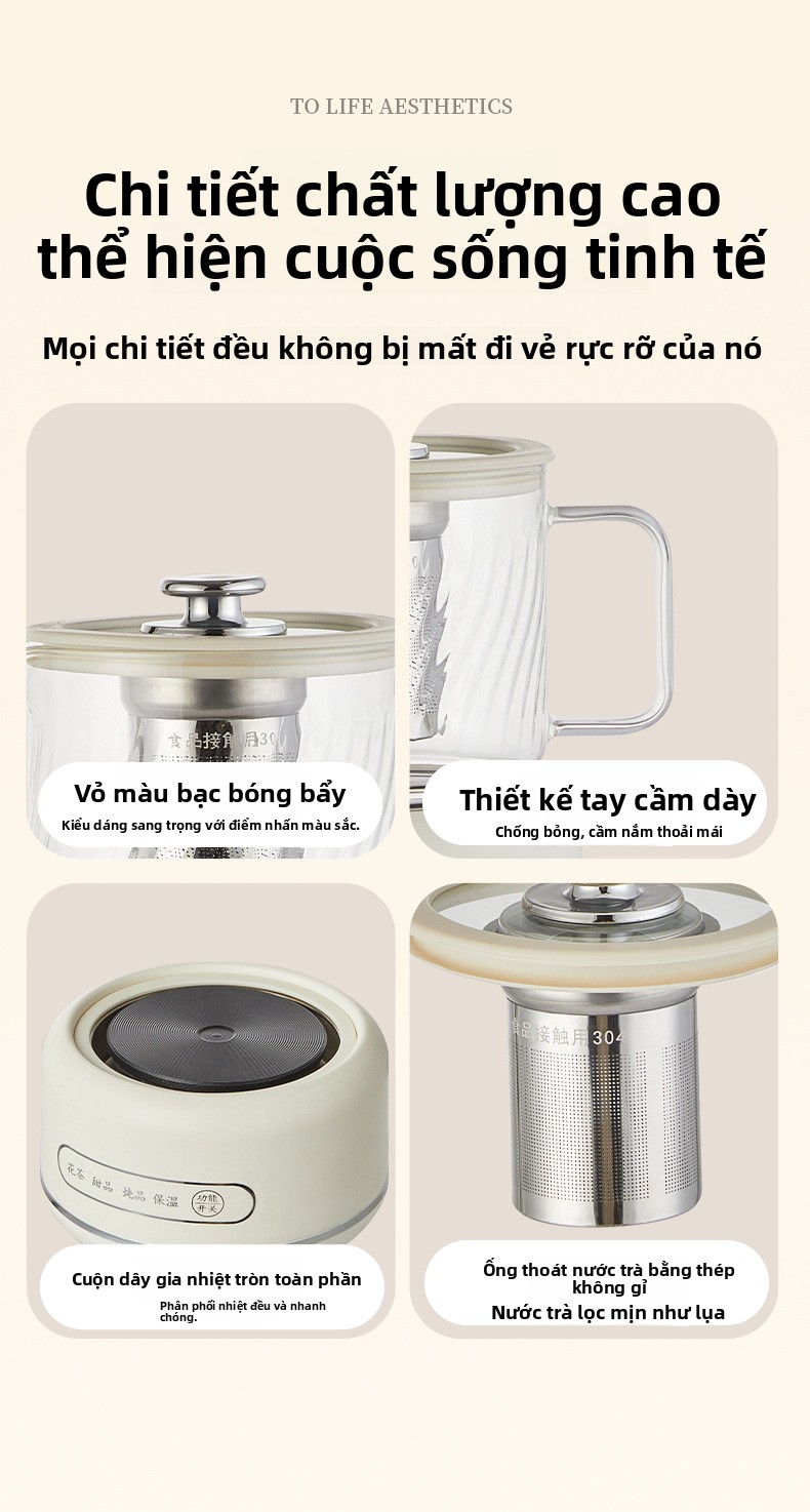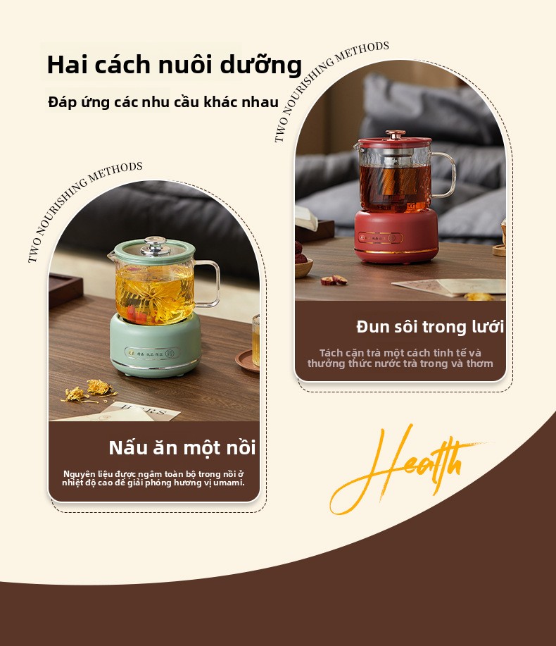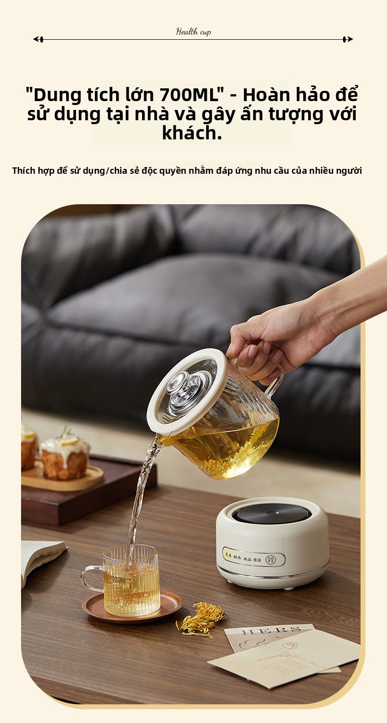 Nồi hầm một ấm nhiệt độ không đổi nhỏ văn phòng thủy tinh đun nước đa chức