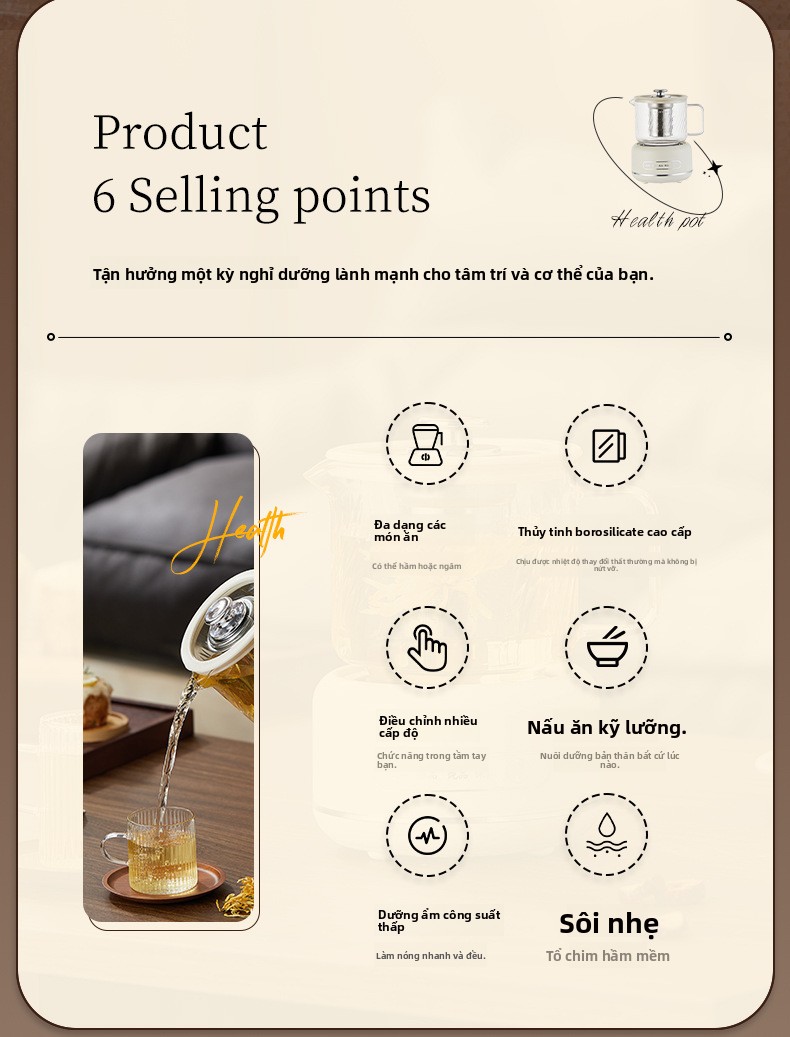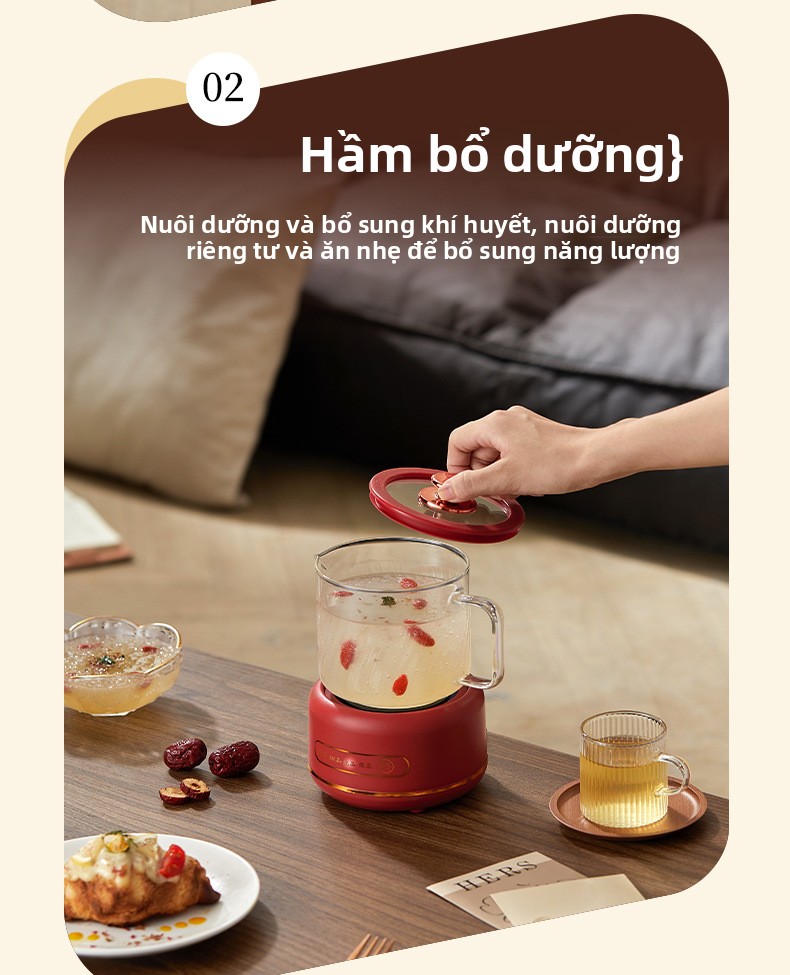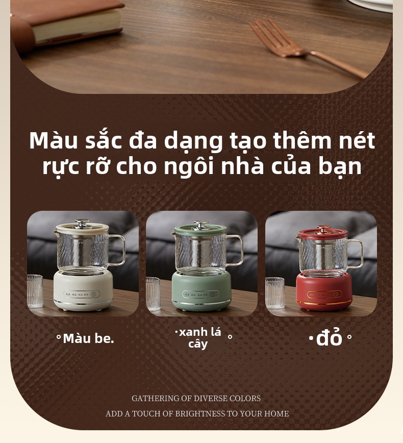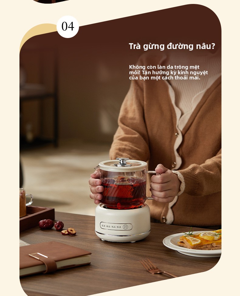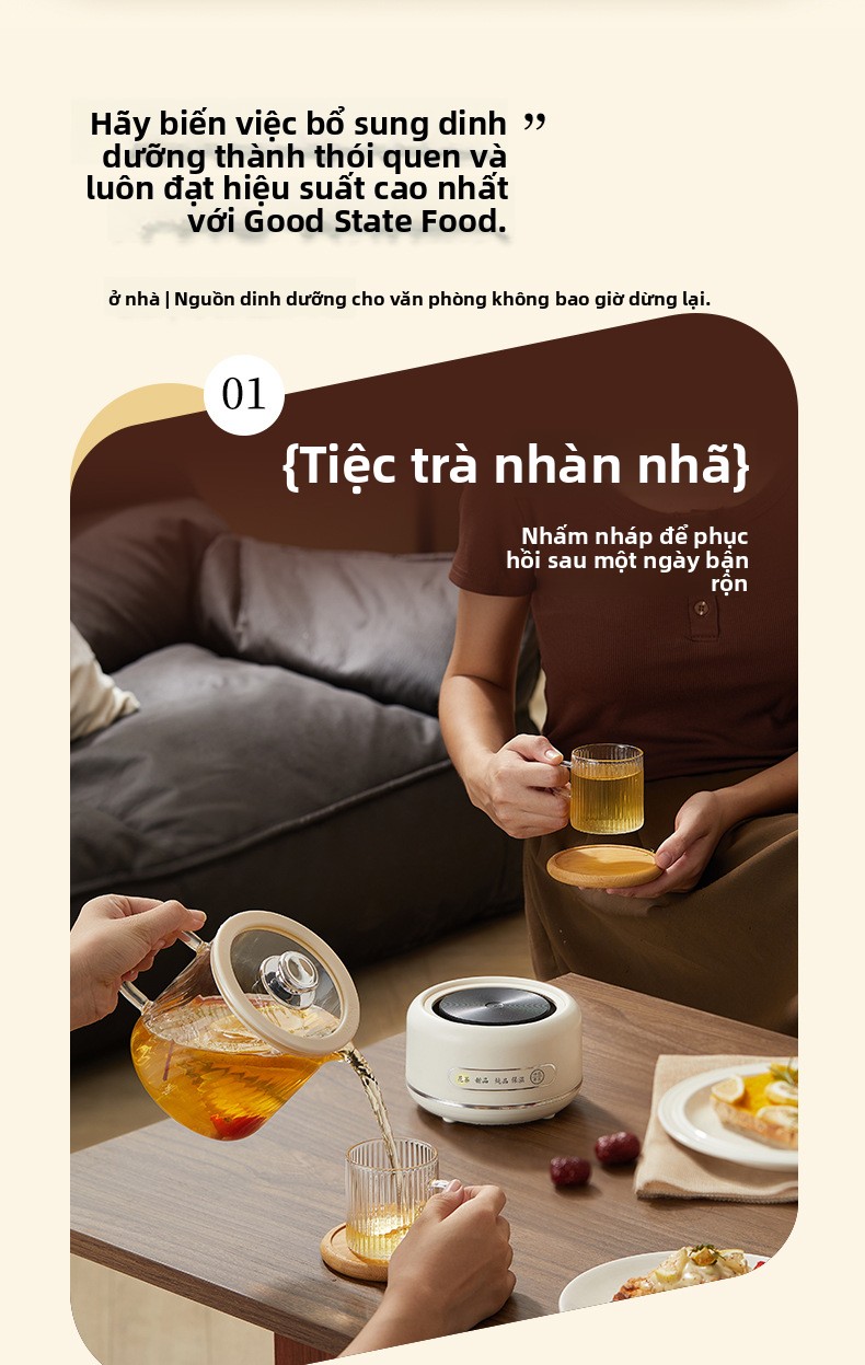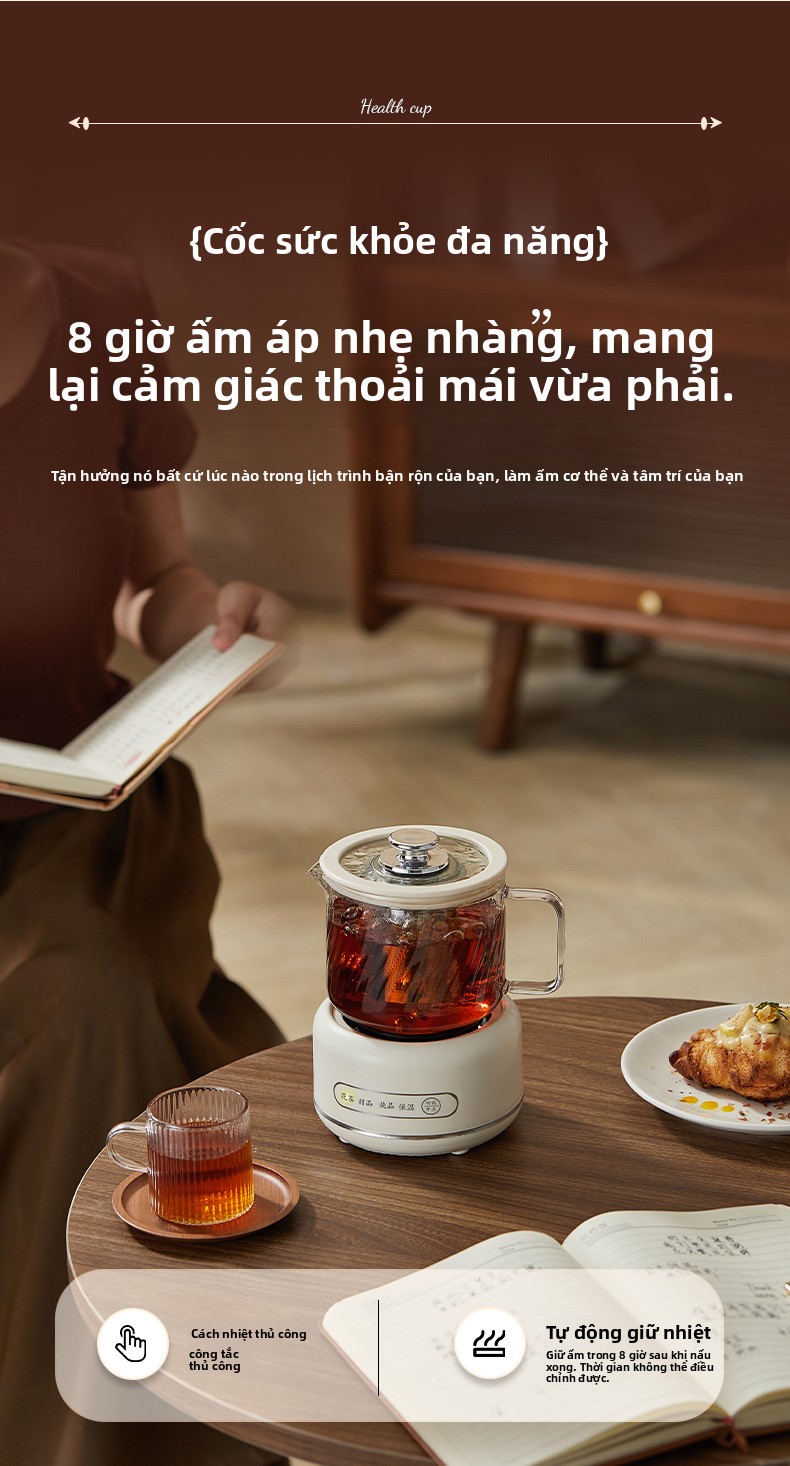 Nồi hầm một ấm nhiệt độ không đổi nhỏ văn phòng thủy tinh đun nước đa chức