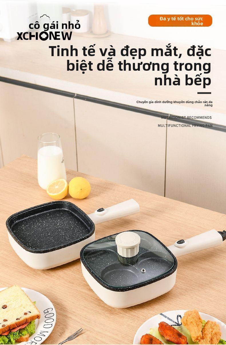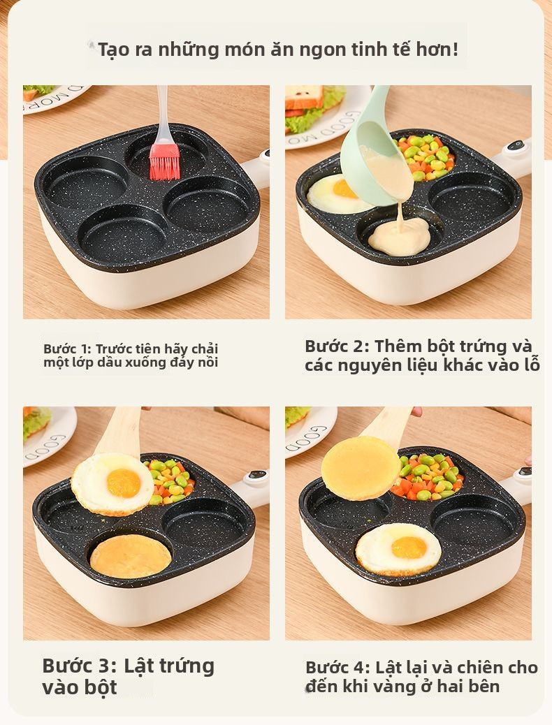 Nồi chiên ăn sáng đa chức năng gia đình bốn lỗ cắm điện không dính nồi chiên trứng rán đáy phẳng bán