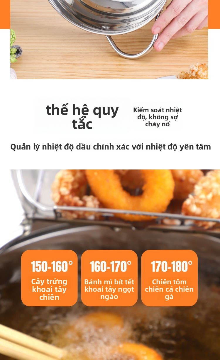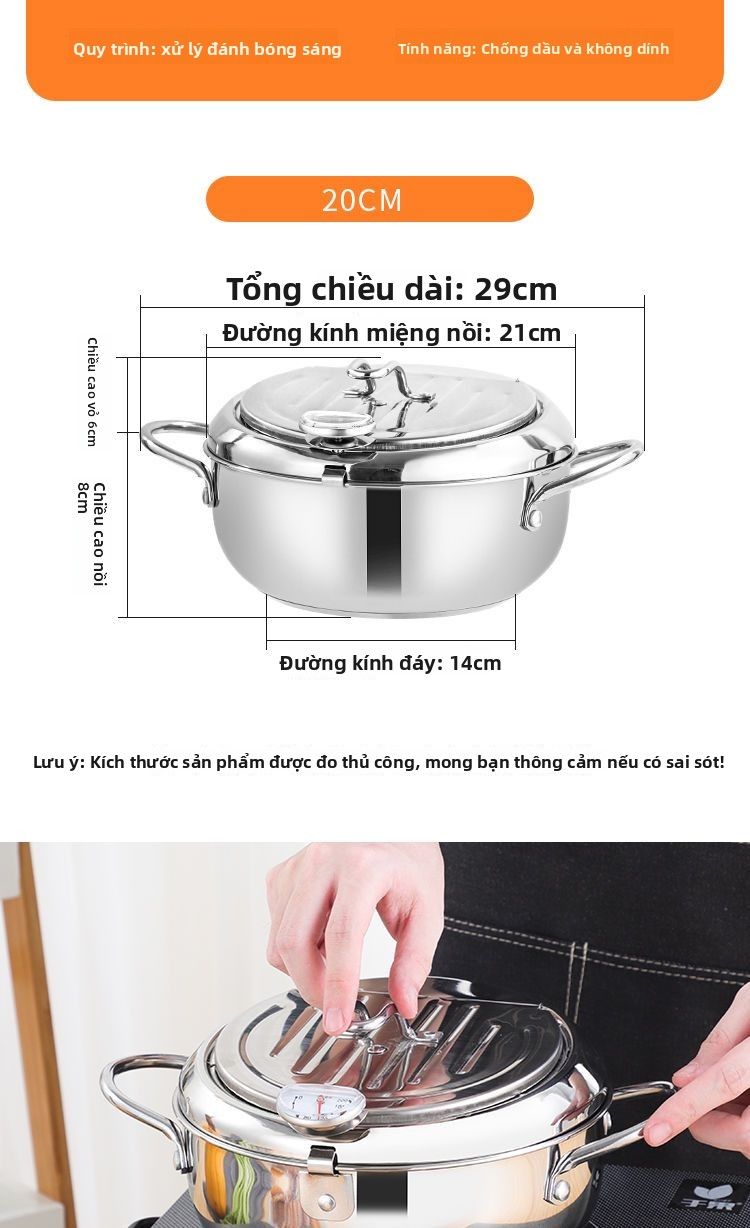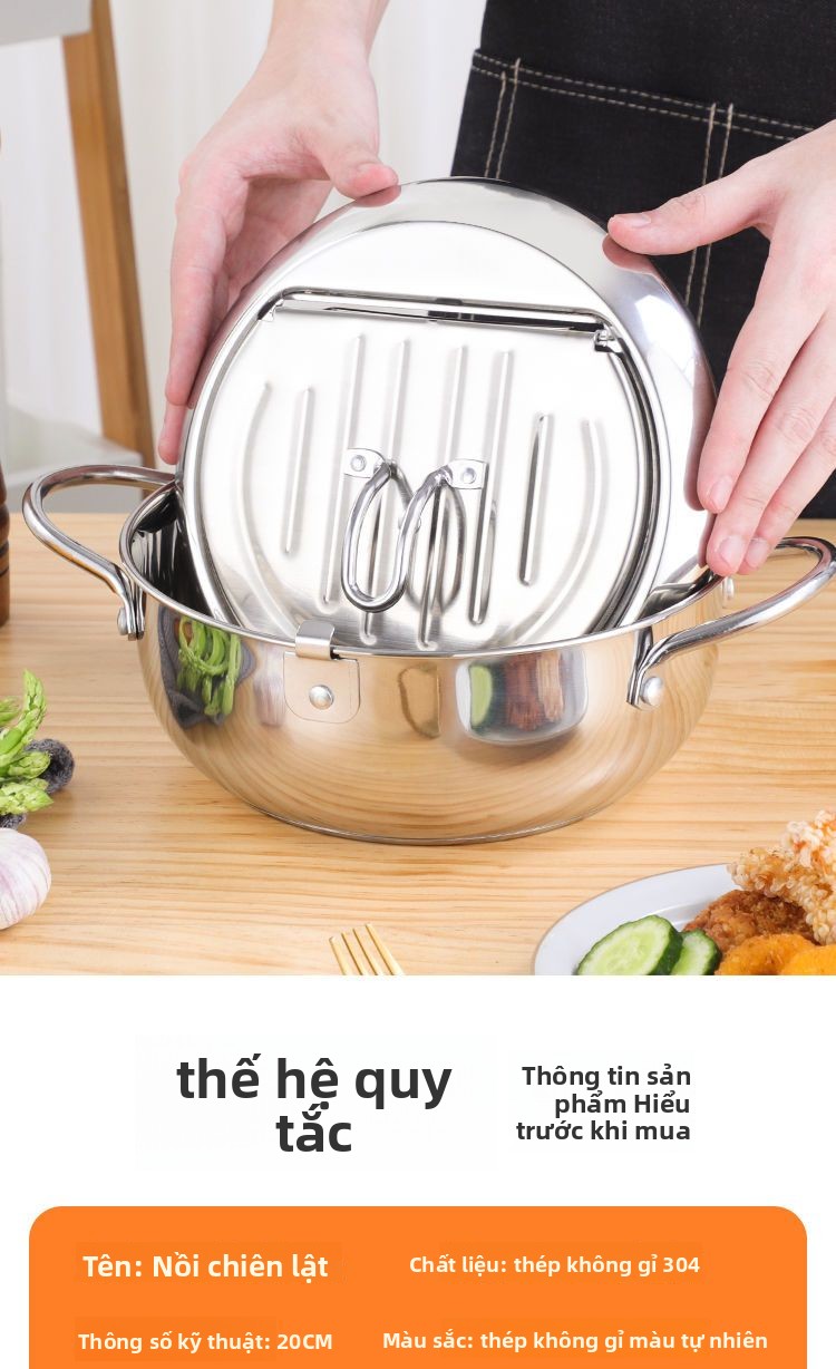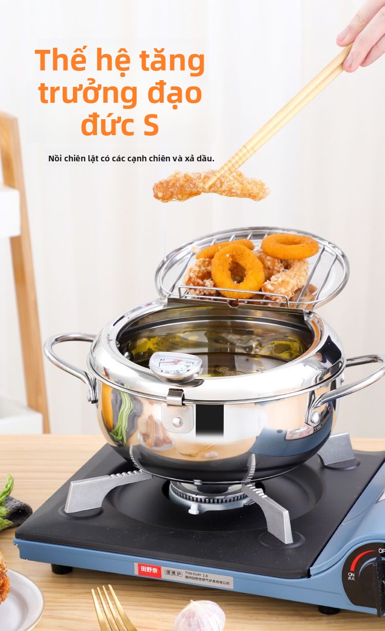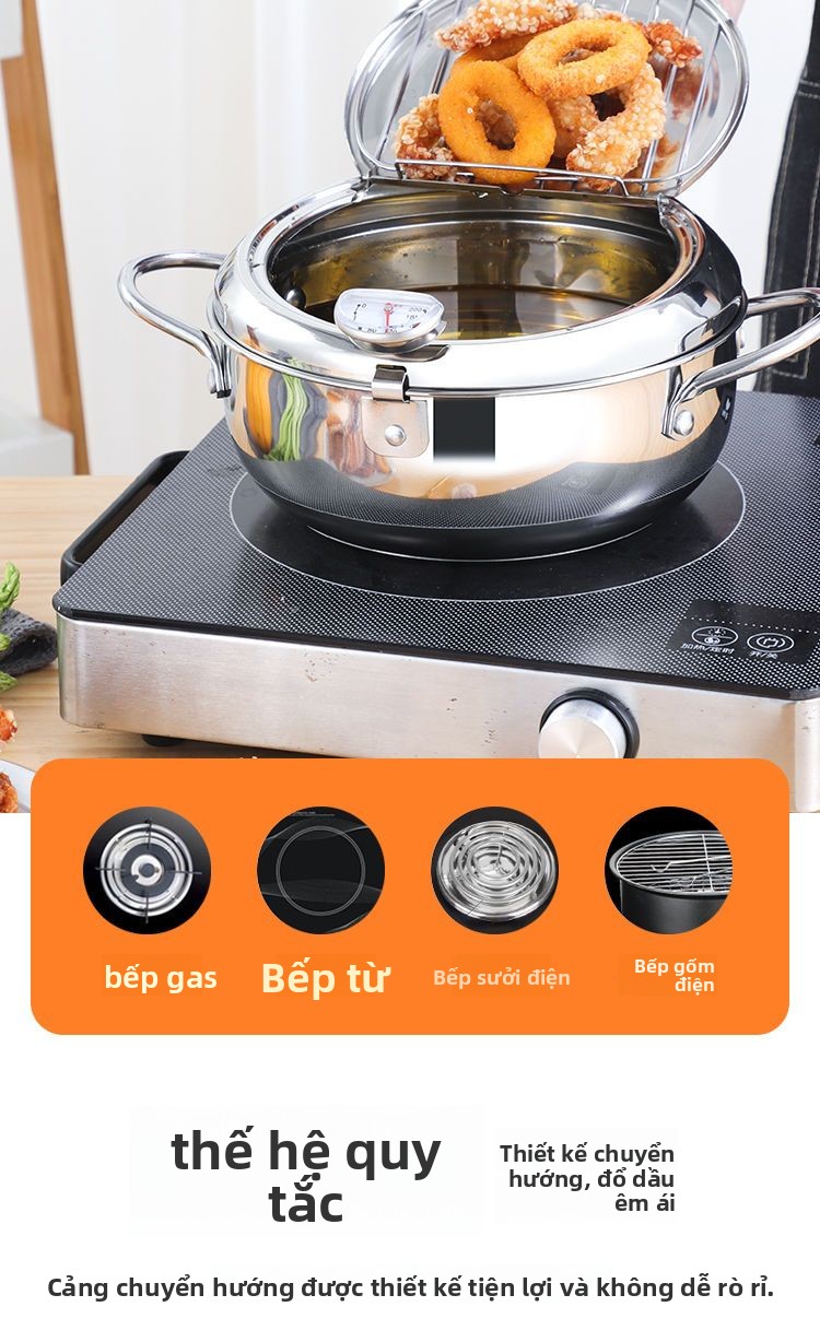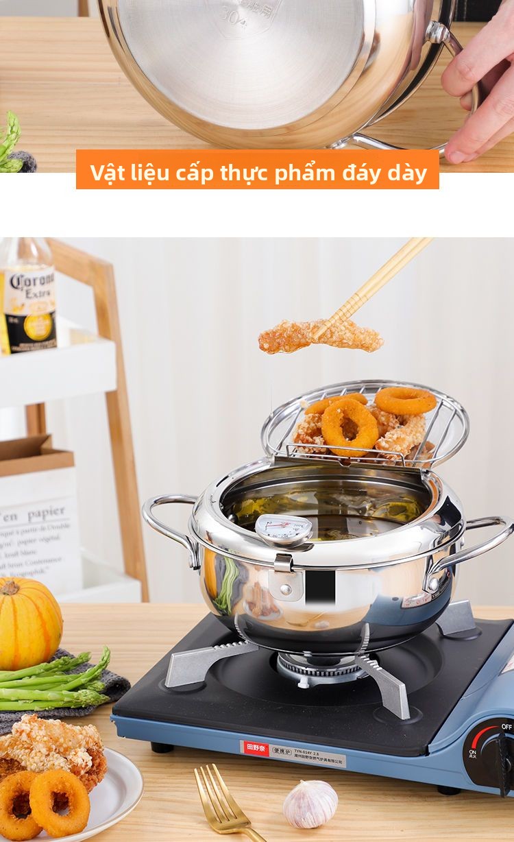 Nồi chiên 304 thép không gỉ Tempura nồi chiên gia đình nồi chiên nhỏ kiểm soát nhiệt độ lò điện từ nồi khô
