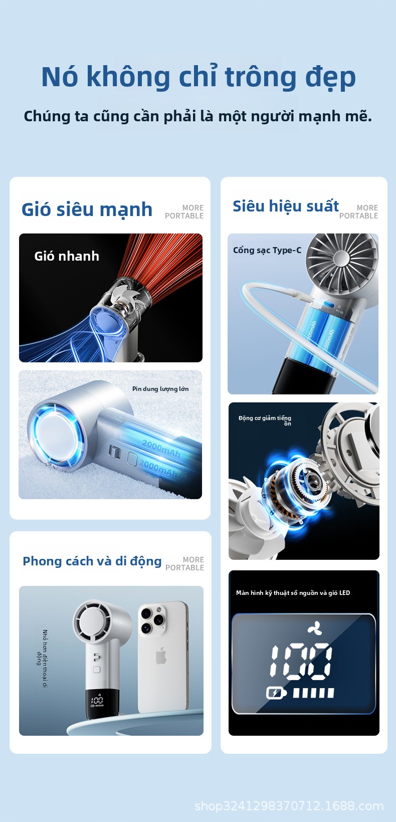 quạt không cánh turbo mini di động USB sạc máy tính để