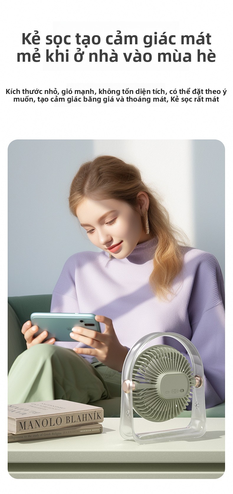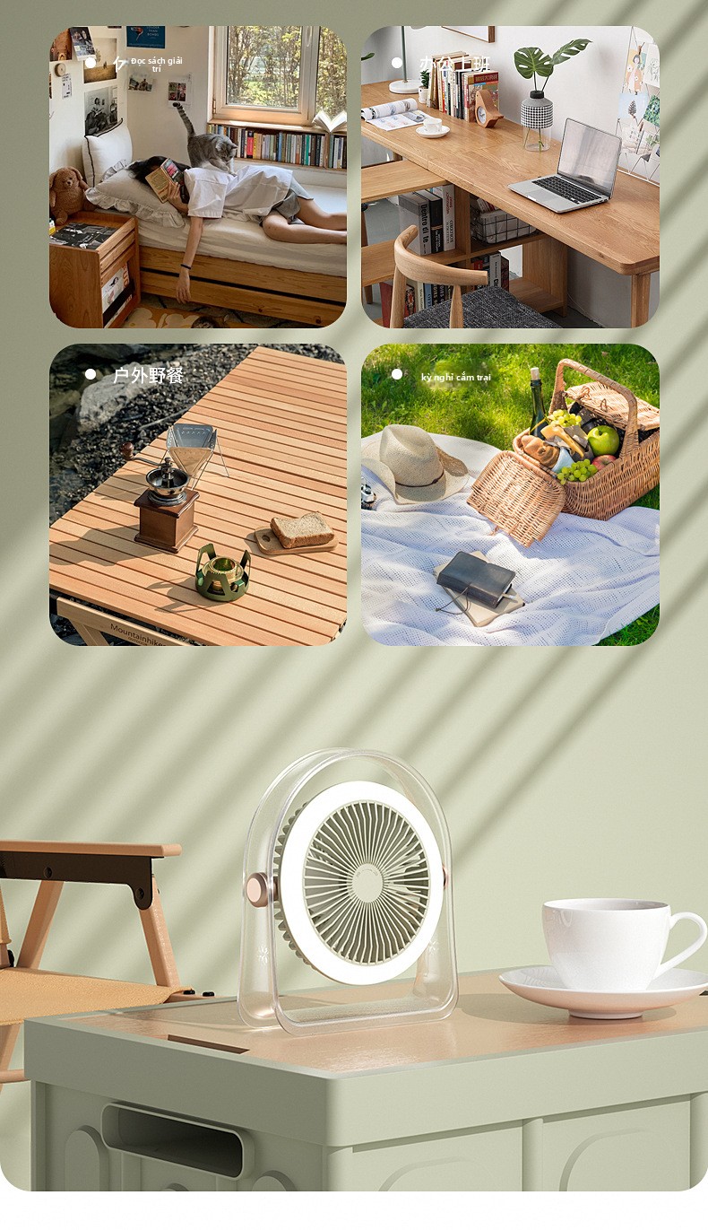 Mùa hè thiết bị gia dụng máy tính để bàn quạt ngoài trời di động khối lượng gió lớn ánh sáng sạc min