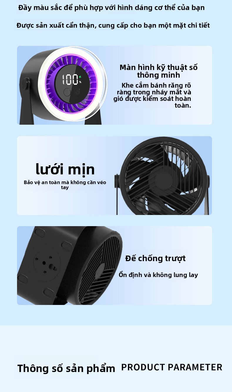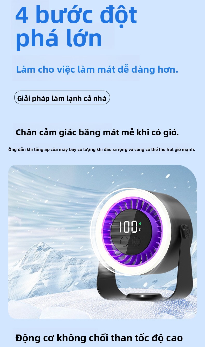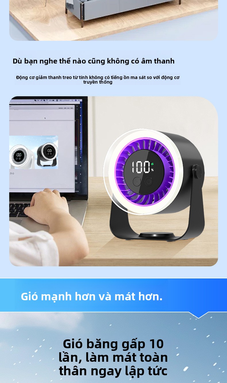 Quạt không dây sạc độ bền cao công suất lớn quạt USB chu kỳ làm lạnh im lặng có thể điều chỉnh