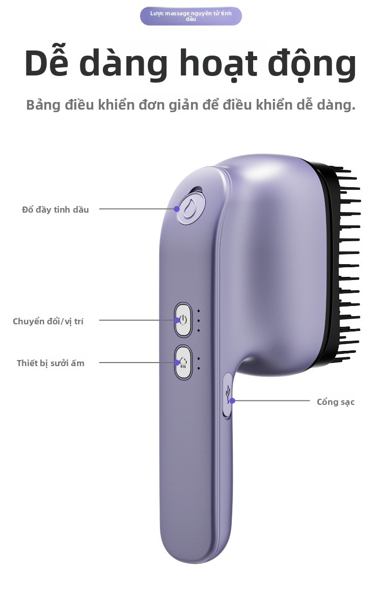 Lược massage tinh dầu lược lớn phun tinh dầu nguyên tử hóa di động ánh sáng đỏ đầu massage chăm sóc