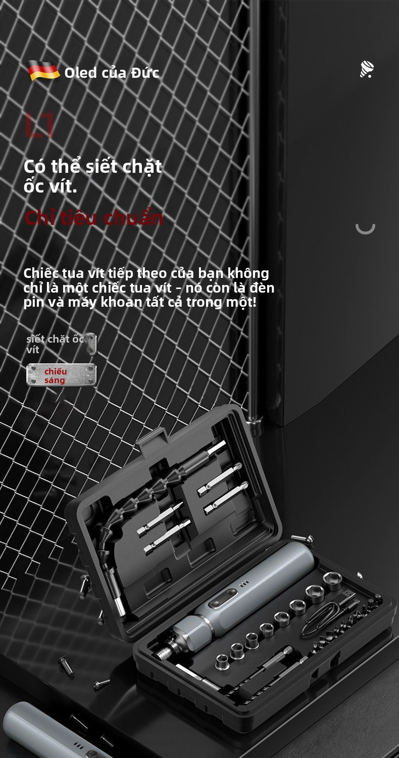Máy tuốc nơ vít điện cao cấp đa chức năng gia đình Olead đầy đủ bộ pin lithium cao cấp tự tích hợp ố